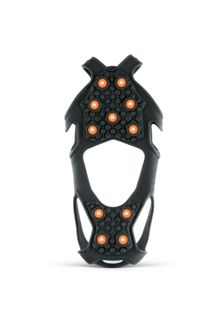 Säkra halkskydd för både fotblad och häl utvecklad för att ge optimalt grepp under promenad eller löpning på is- och snöunderlag i blandad terräng
