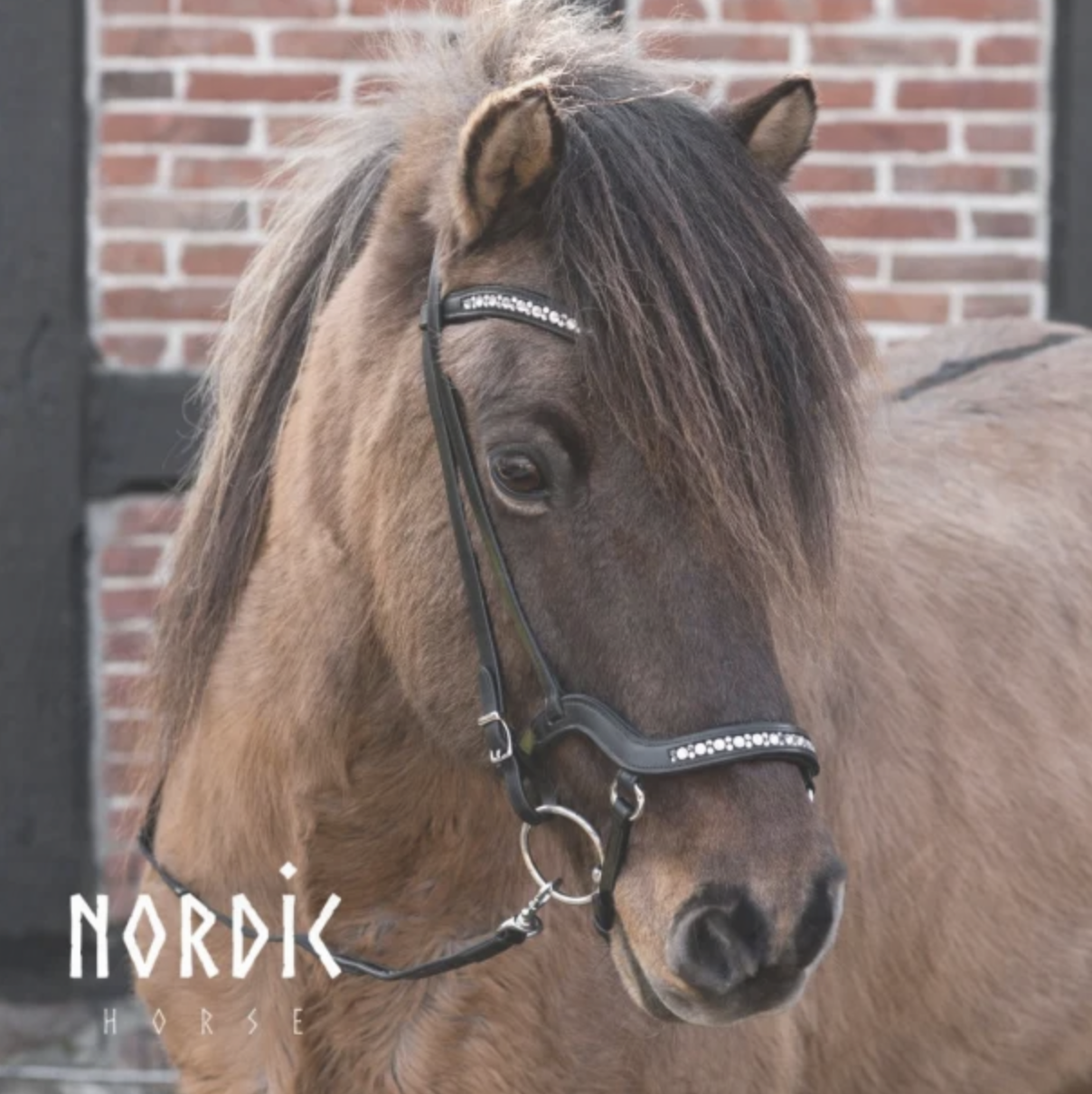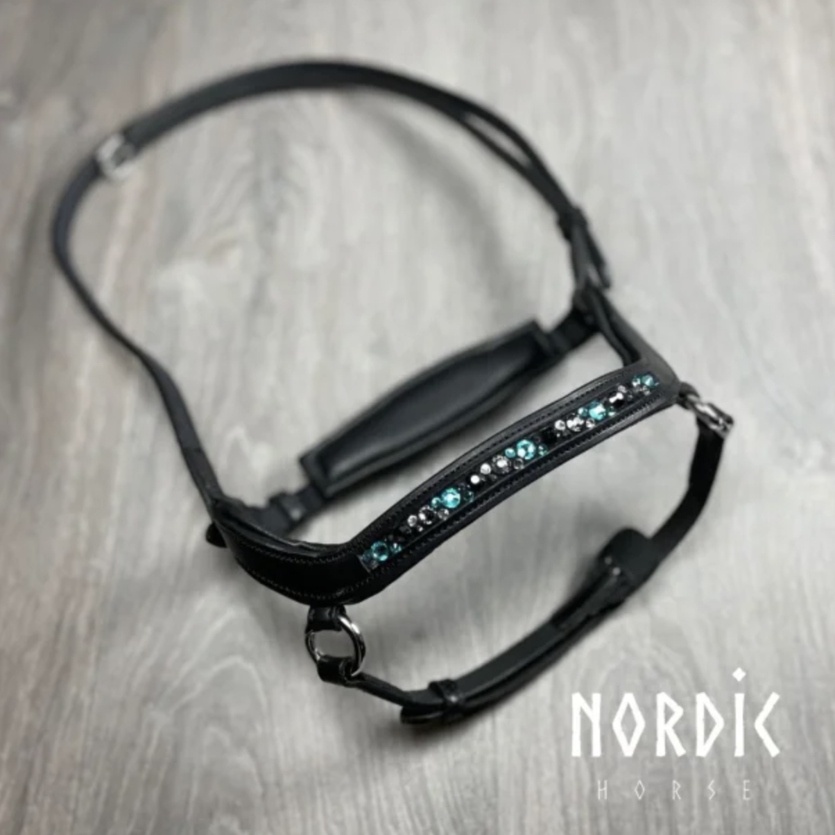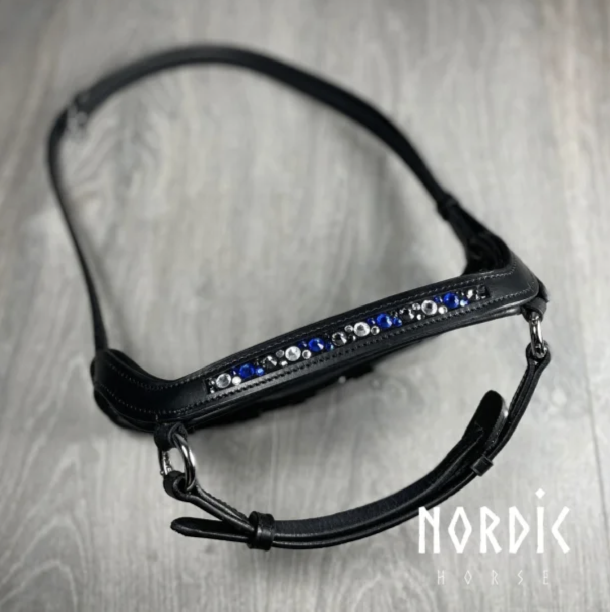 Svart anatomisk nosgrimma med hot fix-stenar i mönster med olika färger.
