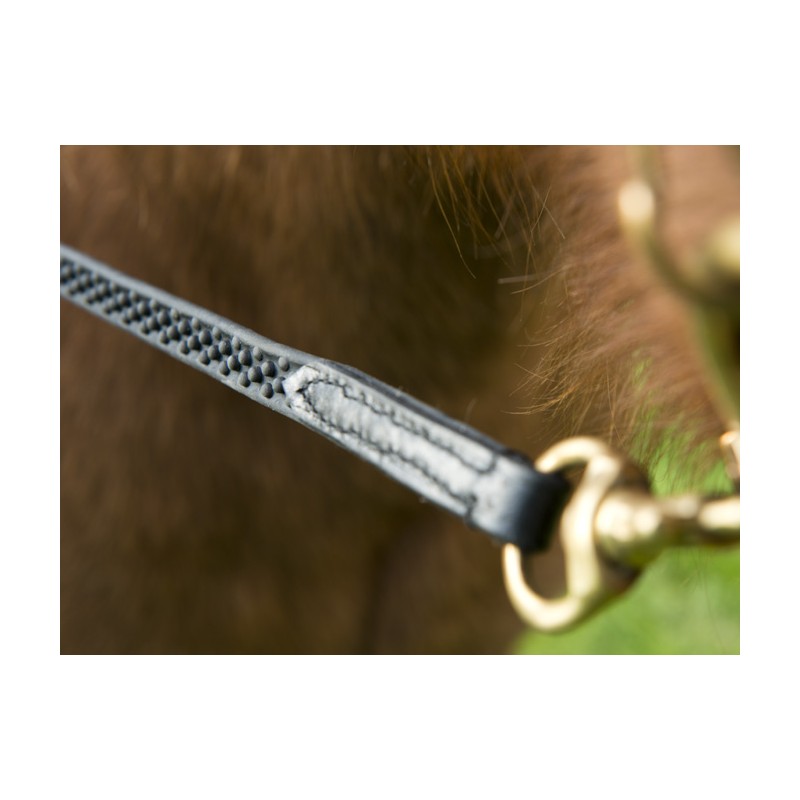 Svarta, knottriga biothanetyglar med snabbspännen eller hakar i stål eller mässing. 245 cm. Från Nordic Horse