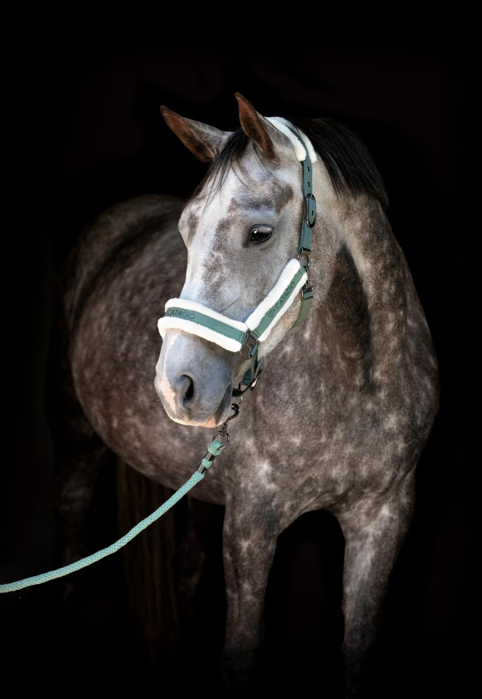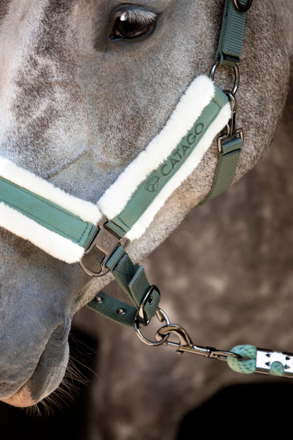 Fin nylongrimma med mjuk syntetpäls på sidostyckena, nackstycket och nosgrimman.