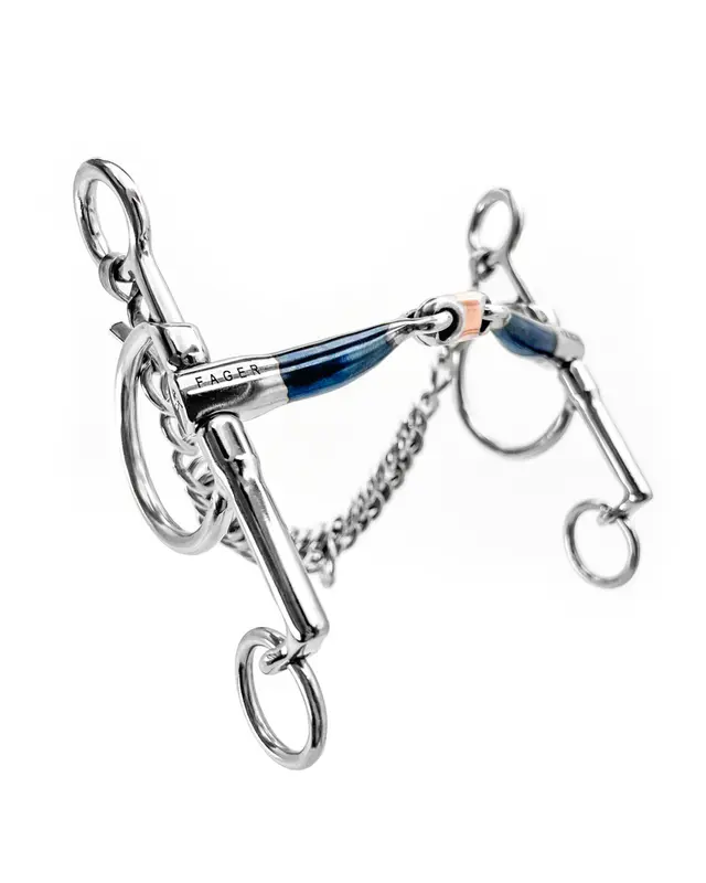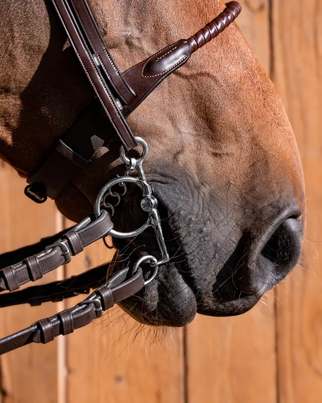 Vi rekommenderar att antingen använda pelham med en delta tygel eller två tyglar, en i den stora lösa ringen och en i den lilla ringen.