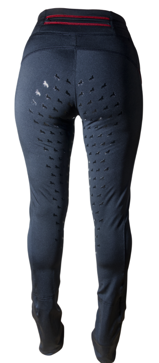 Den stilrena designen är sömlös på insidan av benen för att undvika skav, och har ett elegant silikonmönster med töltsättande islandshästar som ger ett säkert grepp i sadeln.