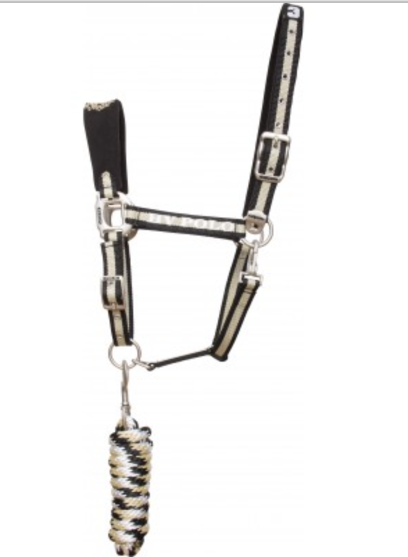 Snygg grimma från HV POLO med många fina detaljer och patchar. Kraftig nylon med fodring. Det medföljer ett matchande grimskaft.