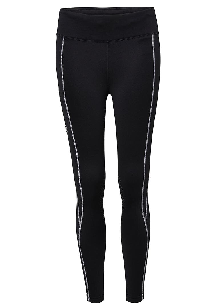 Mjukt och töjbart tyg med fleece inuti. Reflekterande ränder på sidorna och mobilficka på höger ben.