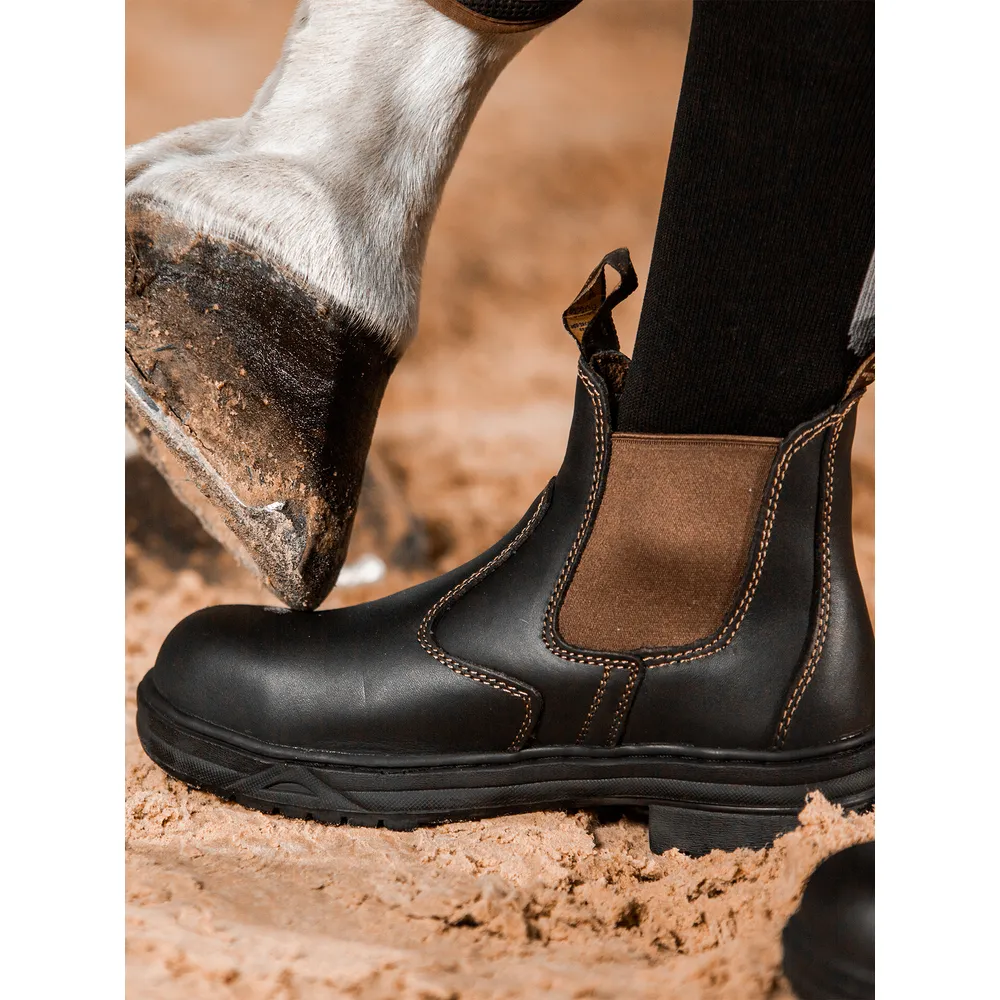 • Kraftig känga i olje-behandlat och tåligt garvläder. • Utrustad med stålhätta i tåbox enligt EU Norm CE-krav EN 345 kan skydda tår och framfot från kraftiga nedslag, t.ex. farliga tramp från häst. • Olje- och syrabeständig kraftig utsula som är mycket tålig i stallmiljö, t.ex. mot hästurin. • Stabil och helt rundsydd utsula för bättre hållbarhet. • Foder i fuktabsorberande canvasmaterial med läderförstärkning i hälen förlänger slitstyrkan invändigt. • Ergonomiskt designad urtagbar innersula i EVA med skön ovandel i mjukt Nylex® erbjuder en behaglig komfort under hela dagen. • Slitstark och robust elasticitet i sidorna för individuell passform. • Inbyggd stålgelänk härdad vid 850°C ger ökad vridstyvhet och stabilitet vid gång och ritt. • Stirrup Control System™ infogat i utsulan hjälper till att hålla stigbyglarna på plats.