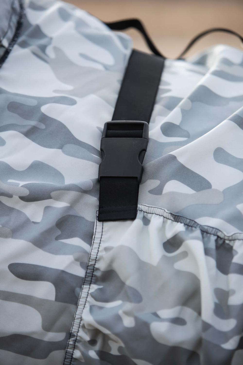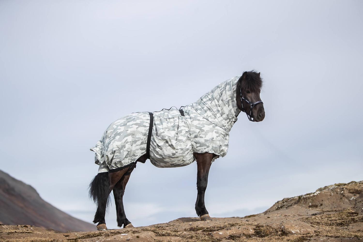 Färg: kamouflage grå med TOP REITER bokstäver på stjärtklaffen, spännen: svart