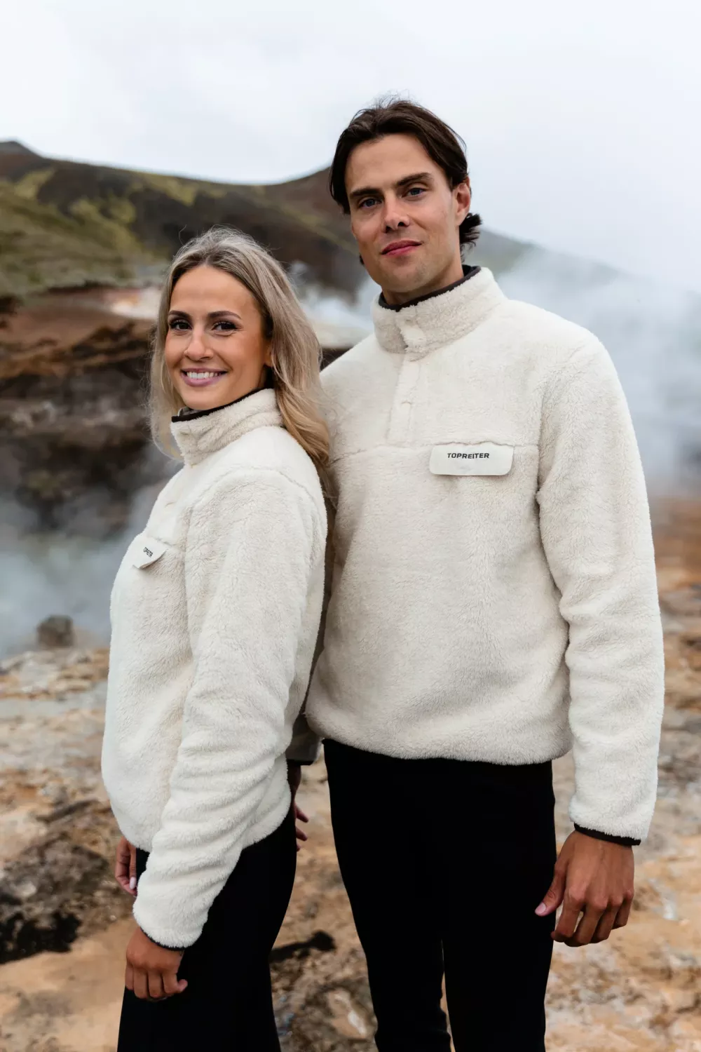 Yttertyg: Återvunnet, mönstrat High Loft‑fleece för värme och hållbarhet.