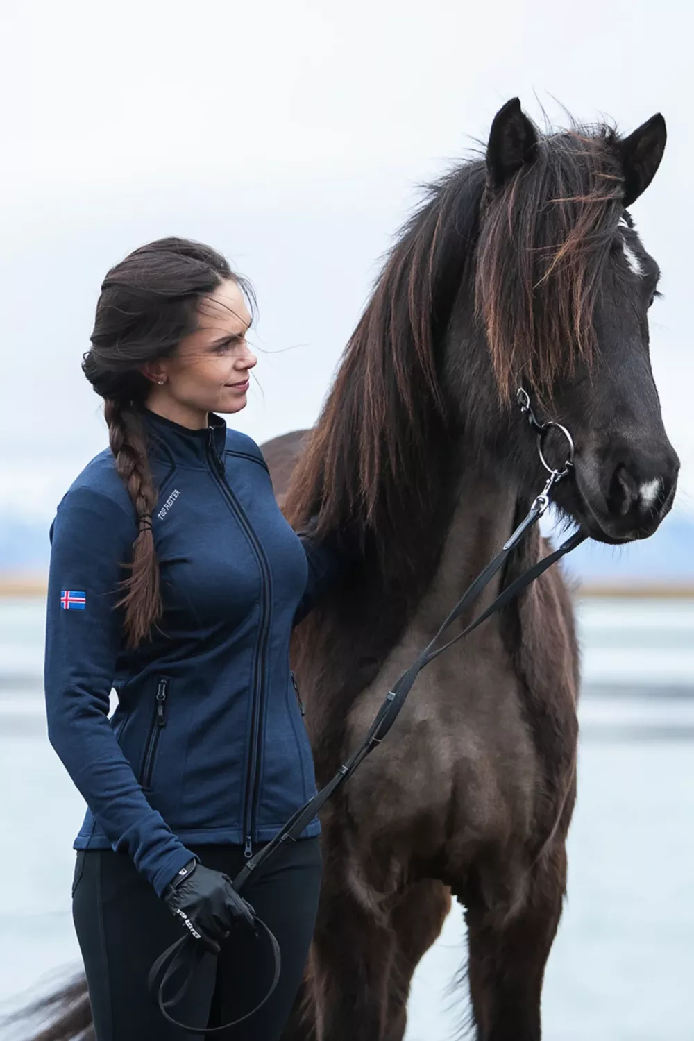 Diskreta detaljer med Topreiter-logotyp på bröst och ärm samt en isländsk flagga som sportig signaturdetalj.