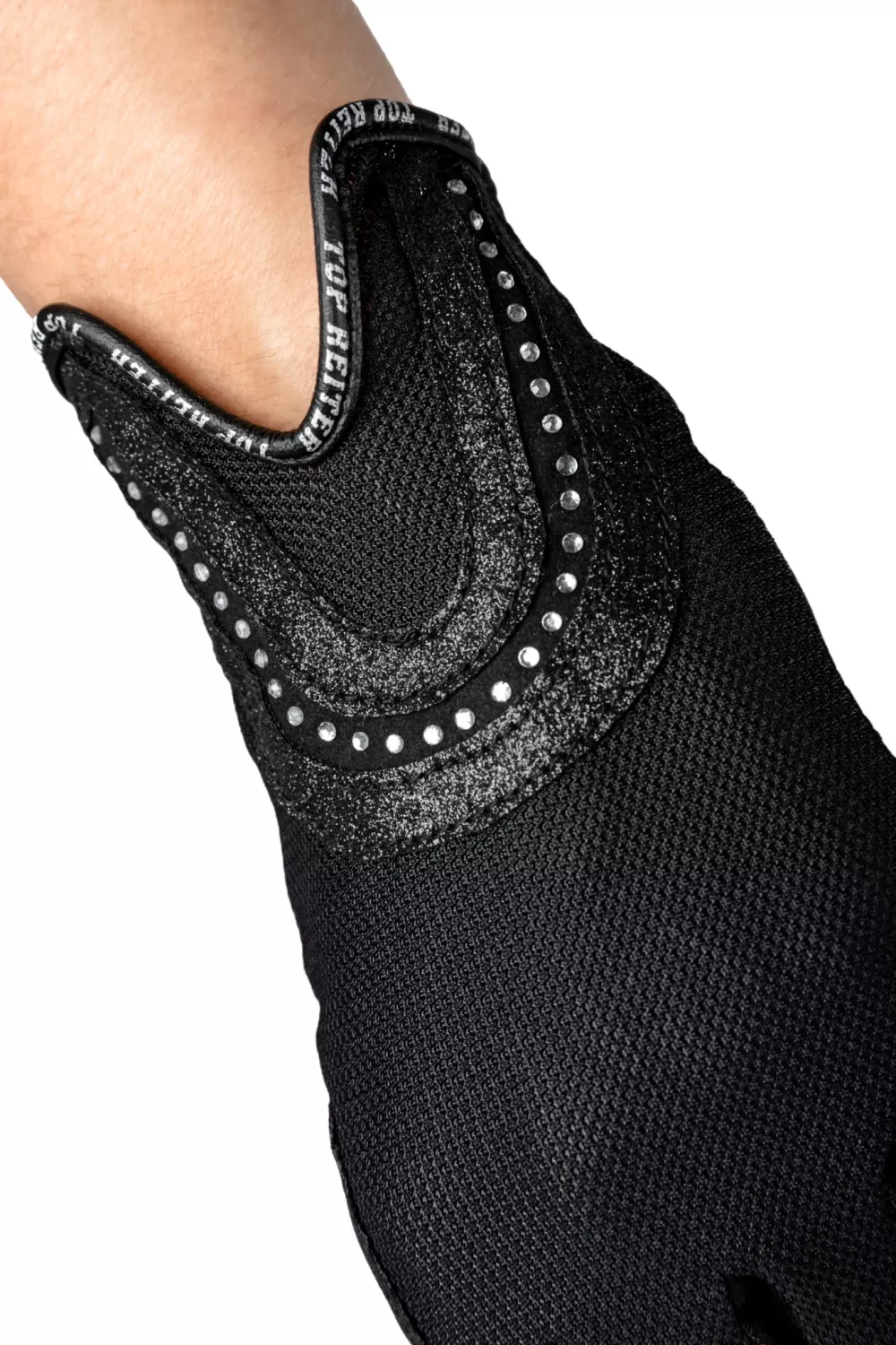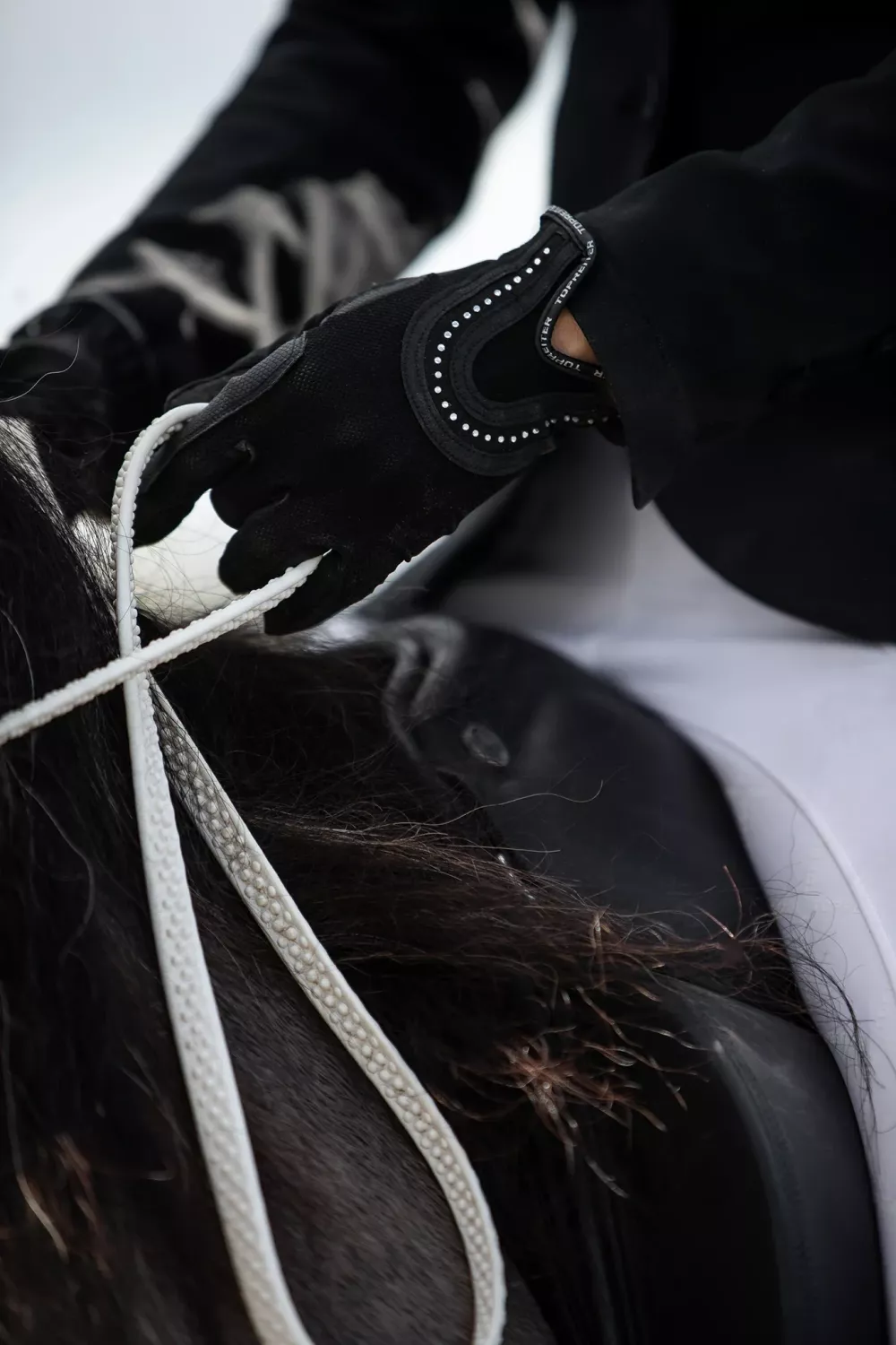 Eleganta, åtsittande handskar med kristallstenar och glitter för tävlingssäsongen.