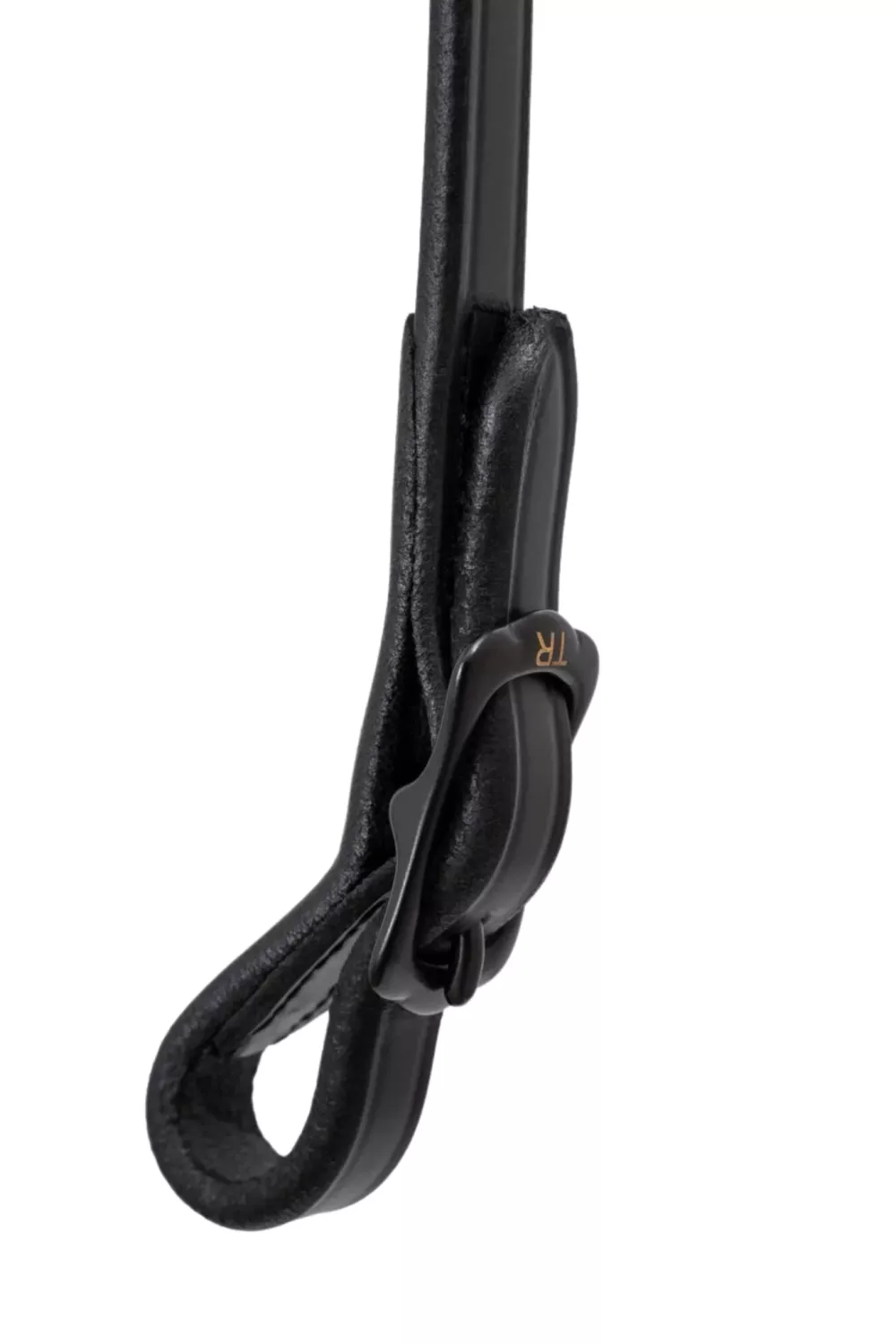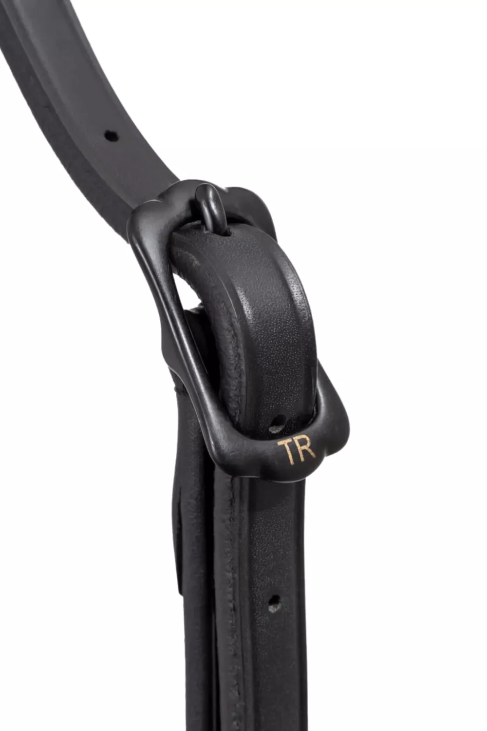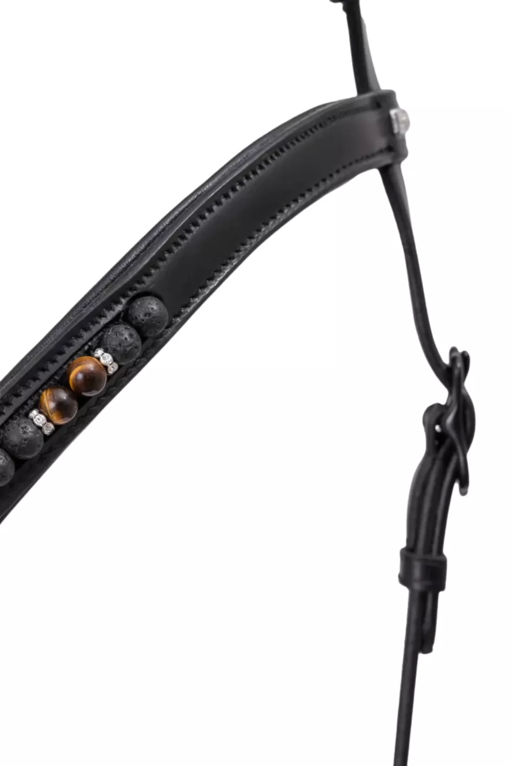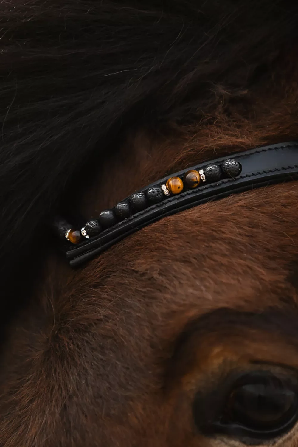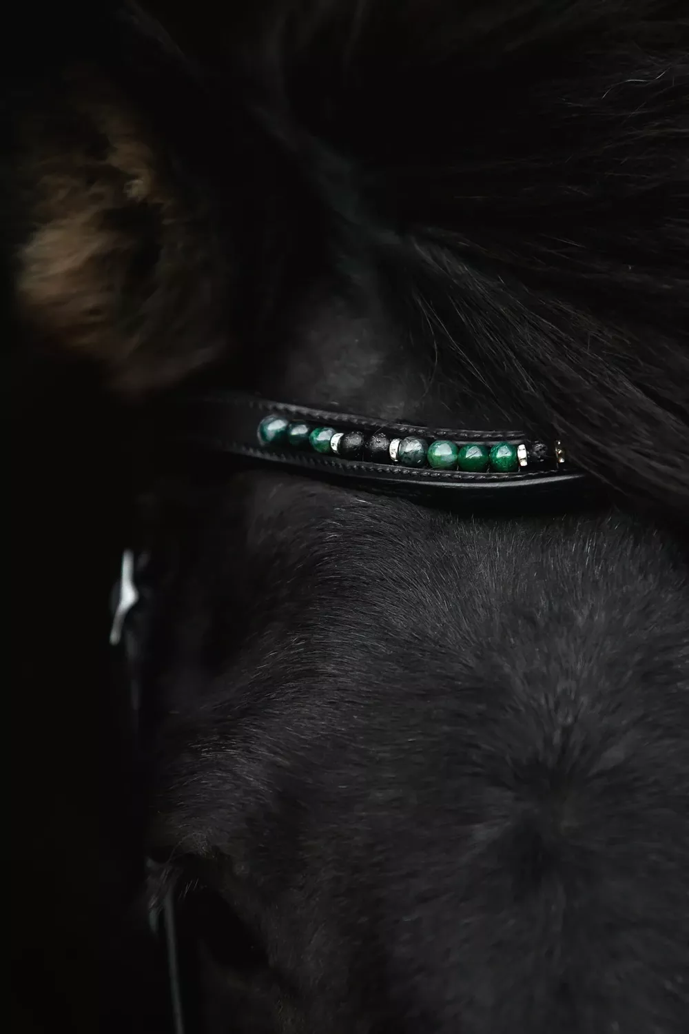 Ett anatomiskt träns tillverkat av exklusivt, djupt svart läder – skapat för ryttare som värdesätter komfort och stil