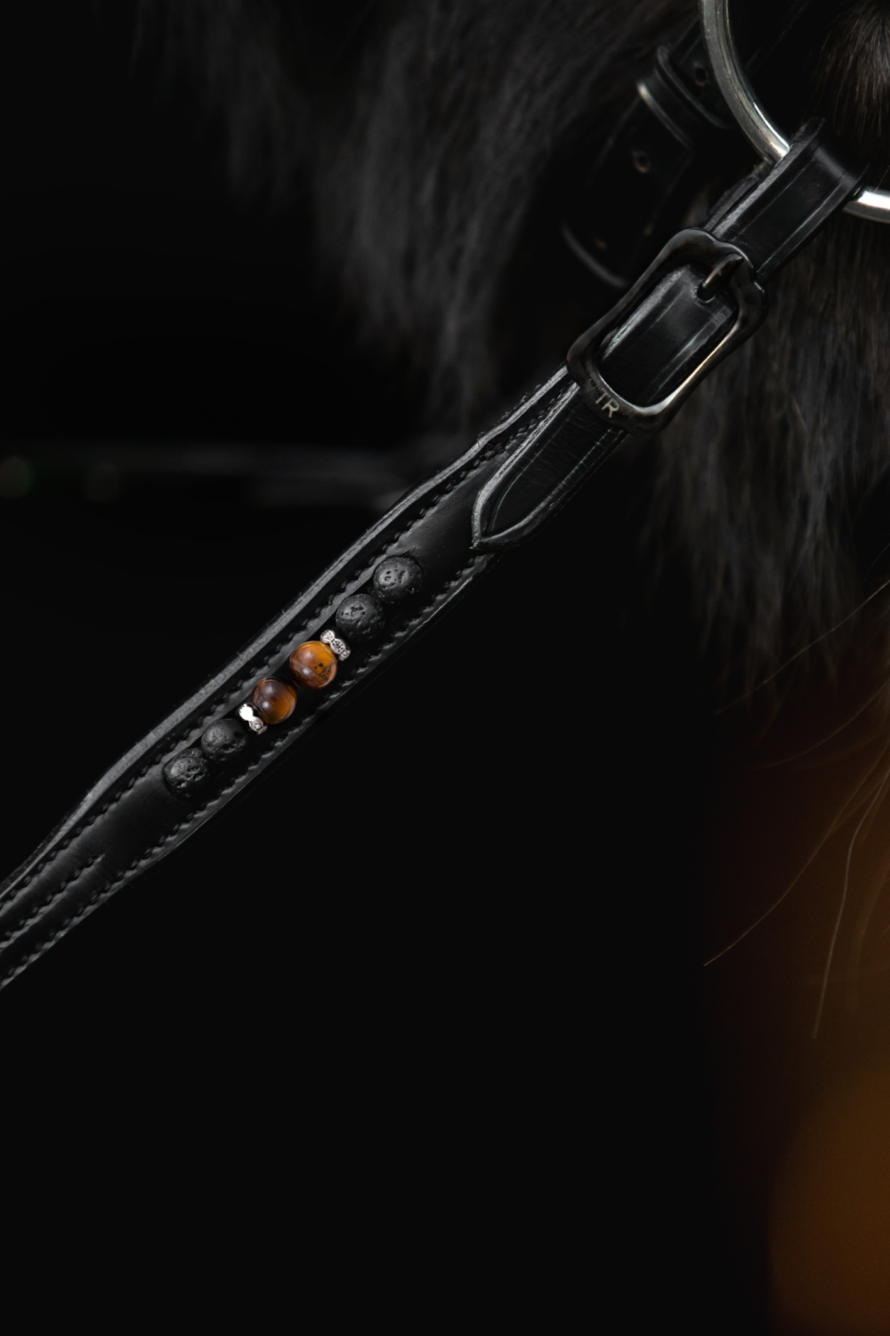 Orka-lädertyglarna med stoppar i högkvalitativt, djupt svart premiumläder kombinerar naturliga material med funktionell precision och en uttrycksfull design – perfekta för ryttare som värdesätter kvalitet, ett säkert grepp och en lugn kontakt med sin häst.