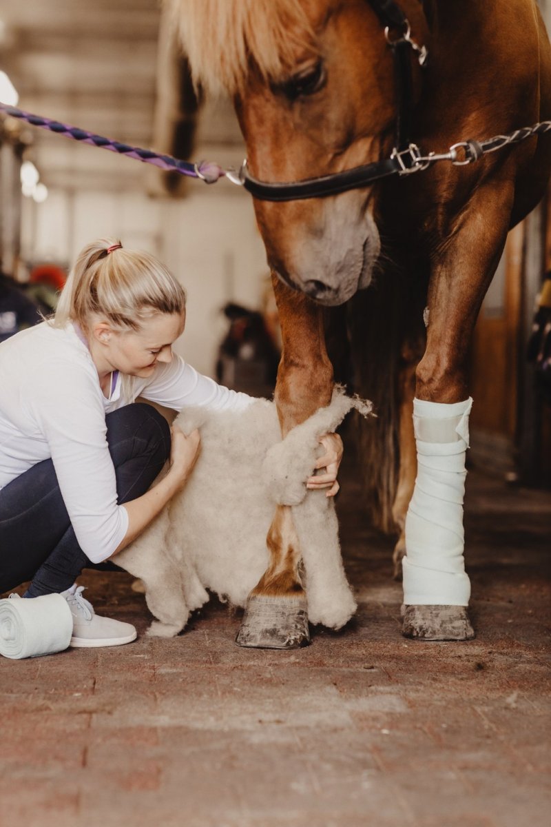 Finsk fårull lindad runt hästens ben förbättrar blodcirkulationen och förebygger belastningsskador. Om din hästs ben svullnar eller ackumulerar vätska, tar ullpadden hand om dessa problem också.