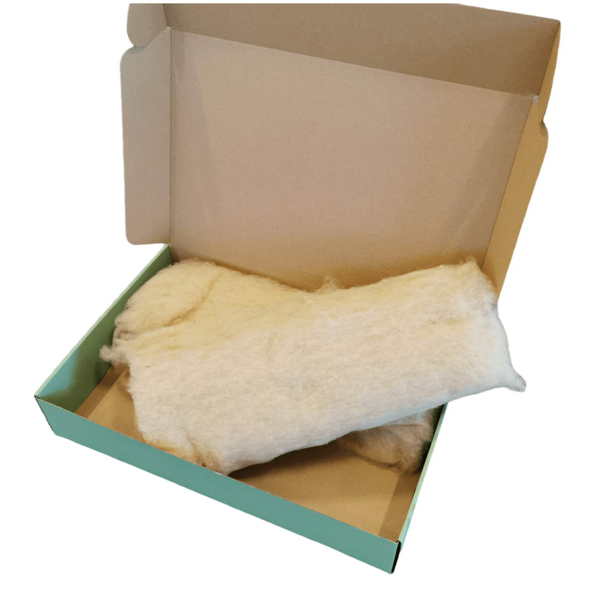 Ullen är kardad till paddar, men är i övrigt obehandlad.
