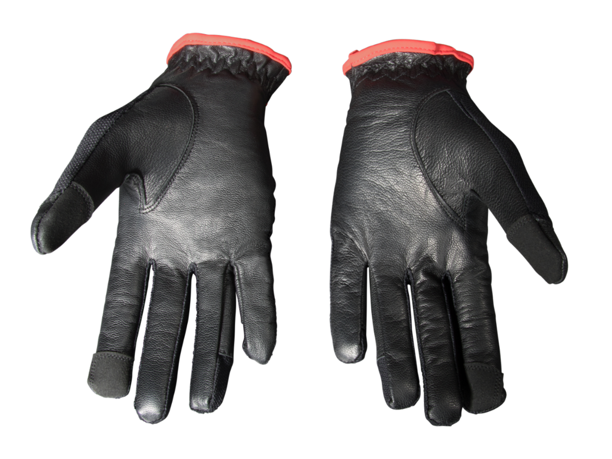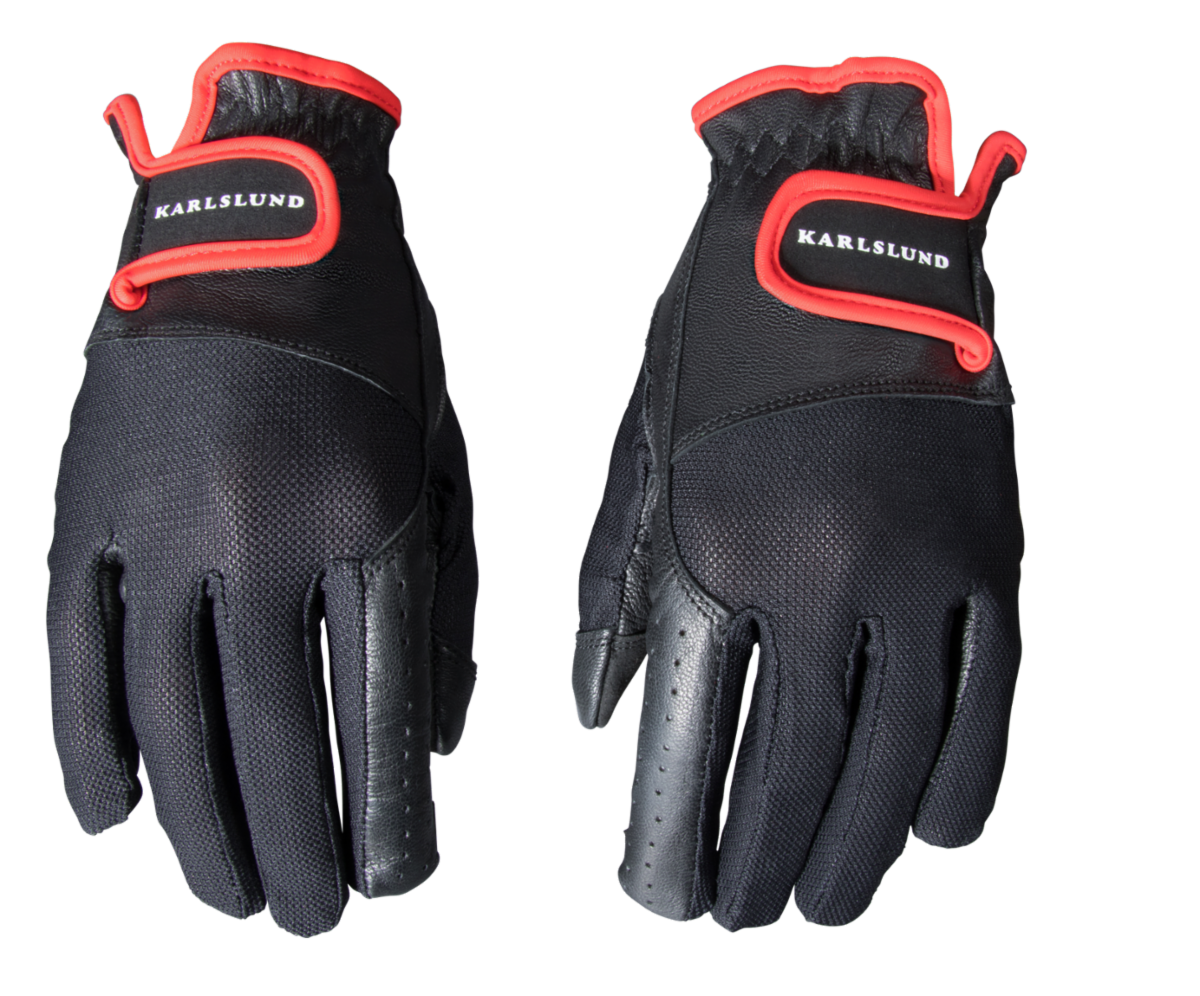 Luftiga sommarhandskar med ventilerande nät på ovansidan och härligt mjukt äkta läder på handflatan, vilket säkerställer ett bra grepp i tyglarna. De är flexibla och komfortabla. Handsken är mobilvänlig.